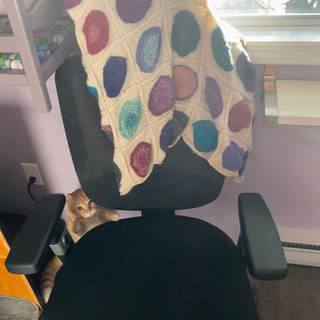 The first thing I saw when I woke up this morning, besides you again, was the lap blanket Michelle knit & gave me. The colours are so happy! I think you will really enjoy sleeping on my lap when I have it over my legs. PLEASE DON’T SNAG IT.